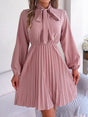 Autumn and winter temperament tie waist long sleeve pleated skirt - Pink / S is backordered and will ship as soon as it is back in stock.