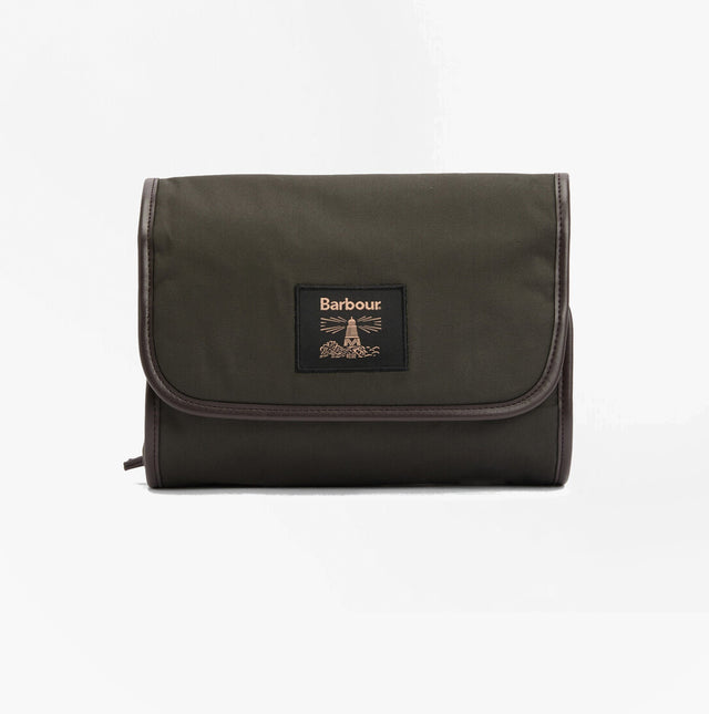 Barbour WAXED HANGING Mens Washbag Olive/Beacon
