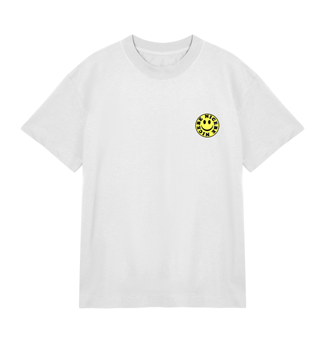 'Be Nice'' - Mens Boxy Tee (Yellow Smiley) - Off white / S / men is backordered and will ship as soon as it is back in stock.