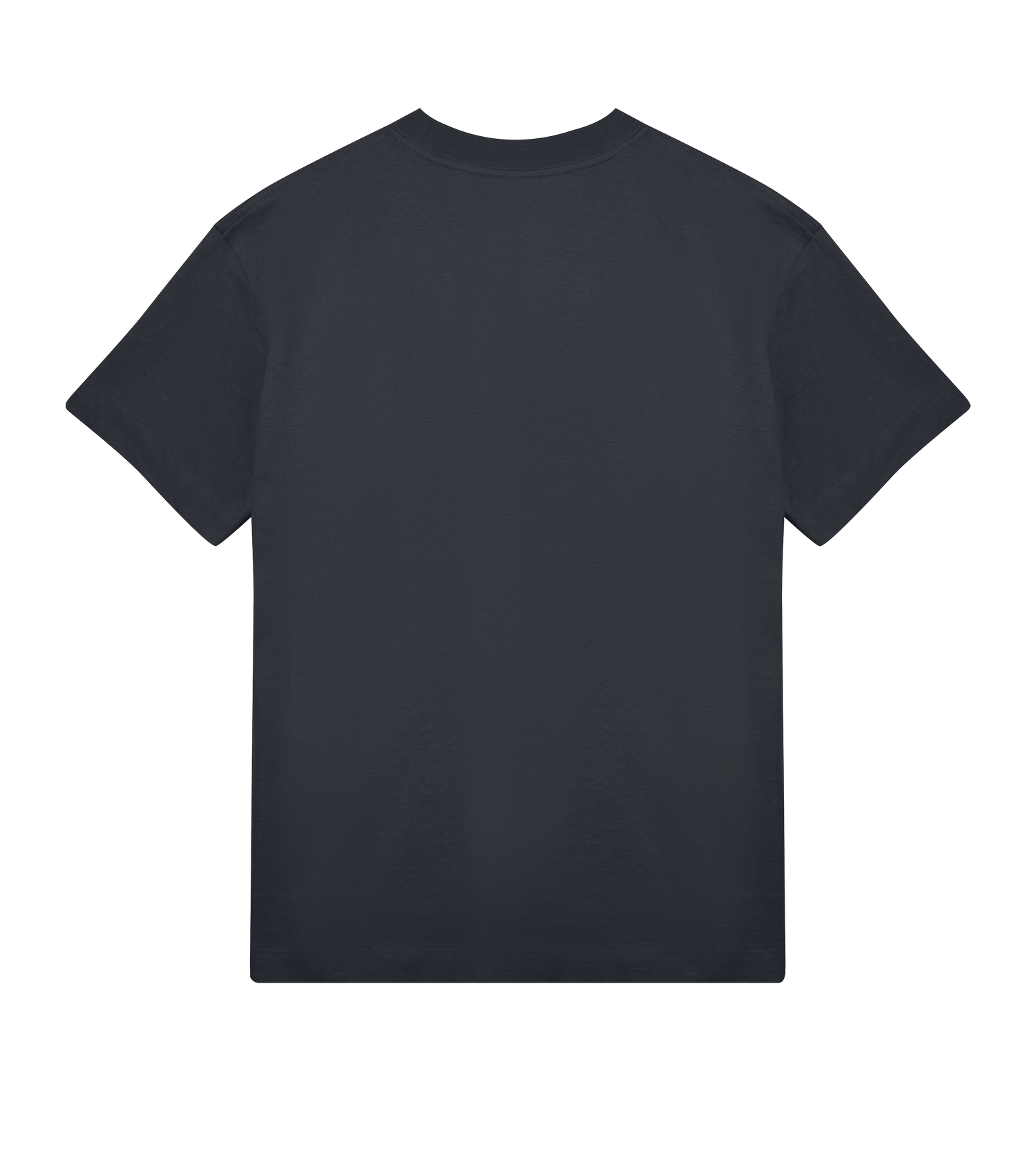 A Mens Boxy Tee in heavy 100% organic cotton, single jersey with oversized, boxy cut and a high, chunky crewneck rib for enhanced shape. The garment features single needle stitching at the sleeve opening and also at the elongated hem fold. Additional detailing includes felled shoulder seams with neck tape, and single chain/straddle stitching over the seam. Available from S to XXL, with scope for sizing up or down, to fit as desired.