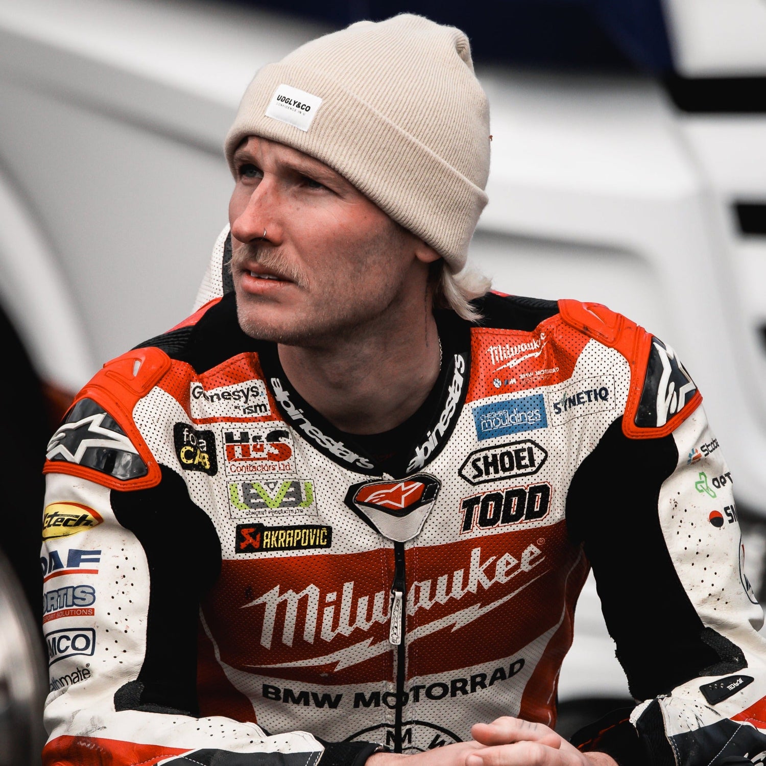 The UGGLY&CO Beige Beanie. A soft creme colour beanie with the classic UGGLY&CO design woven on to the front.