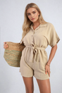 Buttoned Tie Waist Romper - Beige / L/XL is backordered and will ship as soon as it is back in stock.