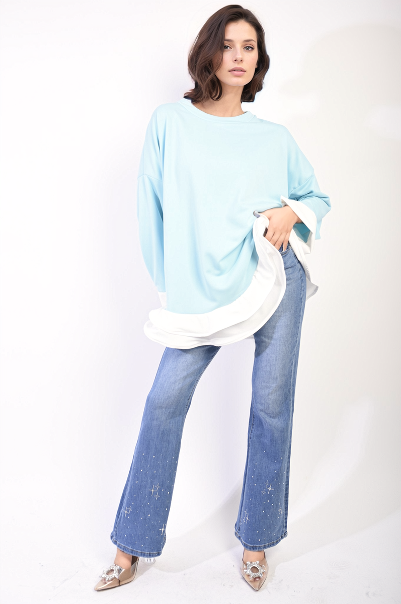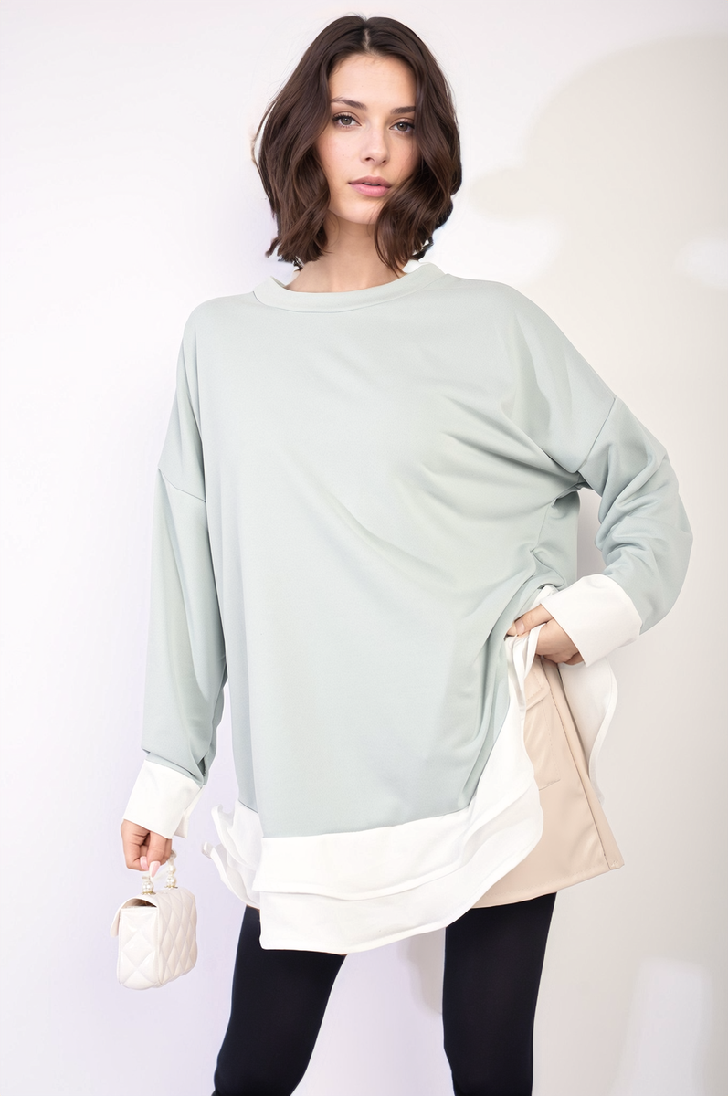 Contrast Ruffled Hem Top - MINT / M/L is backordered and will ship as soon as it is back in stock.