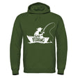 "Gone Fishing" Hoodie - Military Green / S is backordered and will ship as soon as it is back in stock.