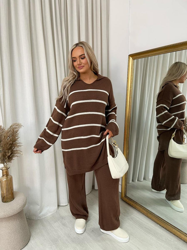 Loose Striped Knitted Top and Trouser Co-ord Set