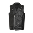 Men's Leather Biker Vest with Zipper, Belted Waist | Black