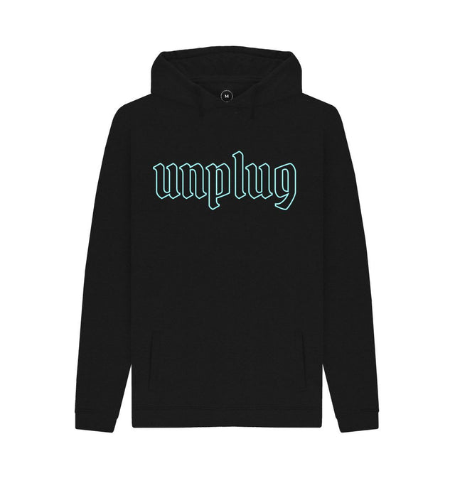 This men's hoodie will keep you comfortable all day long. Its soft fabric blend is designed to be lightweight and breathable, making it perfect for outdoor activities. The Unplug print adds an edgy and stylish look. A great choice for those who want to stay active and fashionable.