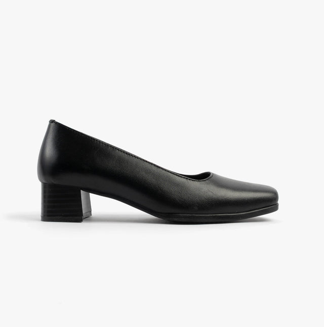 Mod Comfys TARA Womens Low Block Heel Court Shoes Black