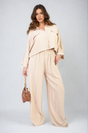 Oversized Long Sleeve Crop Top and Wide Leg Trouser Co-ord Set - Beige / M/L is backordered and will ship as soon as it is back in stock.