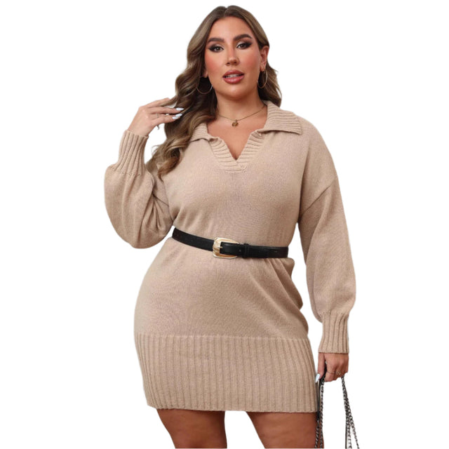 Plus Size Polo Collar Sweater Dress – Body-Hugging Knit Dress for Women
