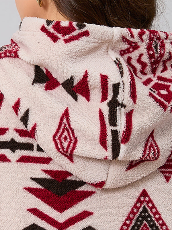Plus size women's loose casual geometric pattern thickened plush sweatshirt jacket