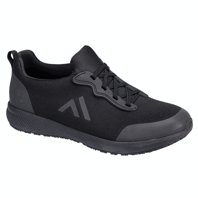 This lightweight occupational trainer is 100% metal free, and has an upper in stretchy textile aiding a more snug fit. It has a dual density phylon rubber outsole for superior grip and energy absorption.