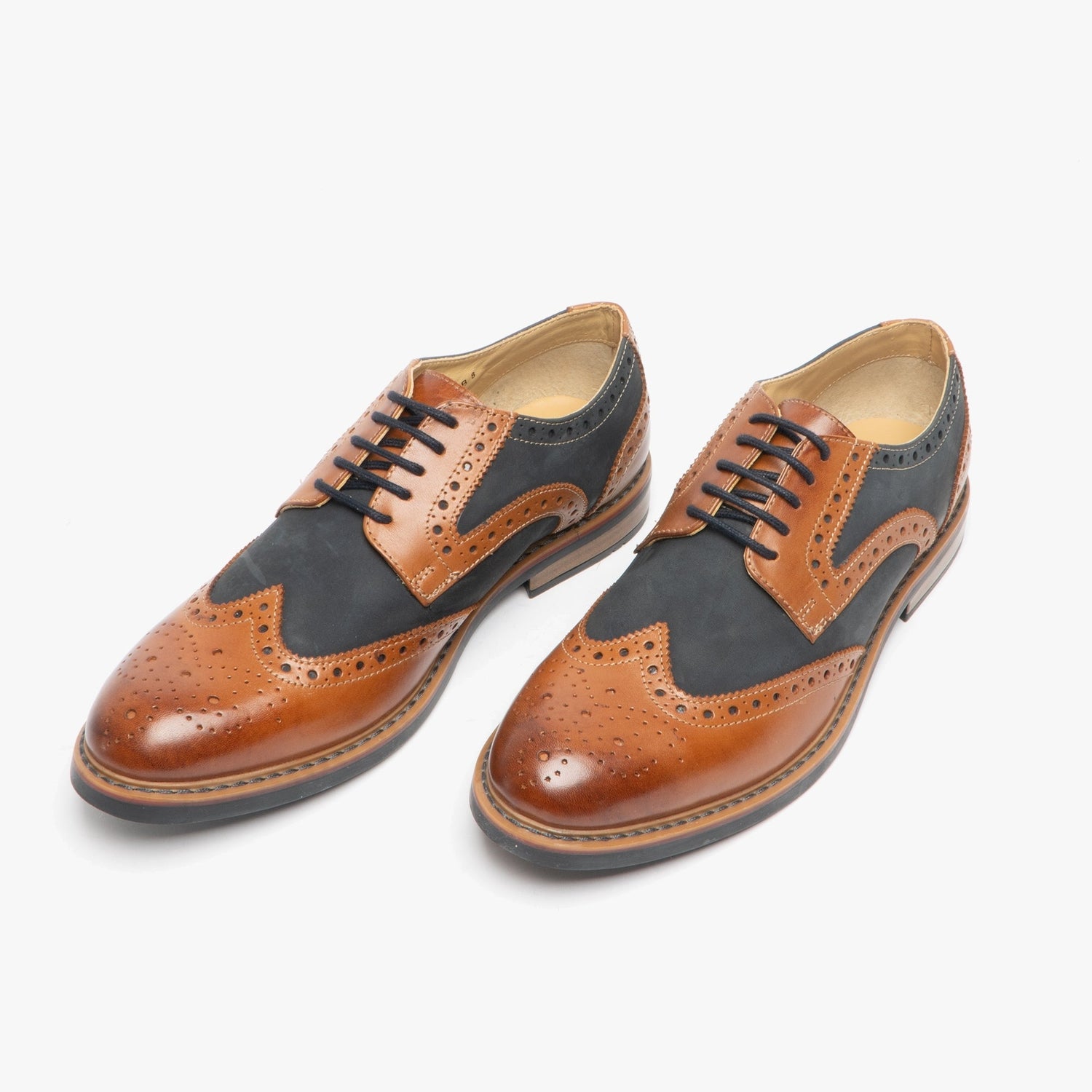 Roamers ARNOLD Mens Leather/Nubuck Brogue Oxford Shoe Dark Tan/Navy