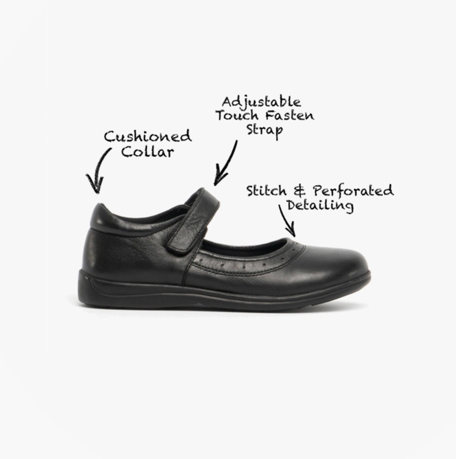 Roamers ELSA Girls Leather Touch Fasten Mary Jane Shoes Black