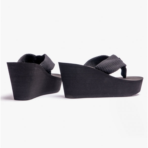 Rocket Dog DIVER WEBBING Womens Textile Wedge Flip Flops Black