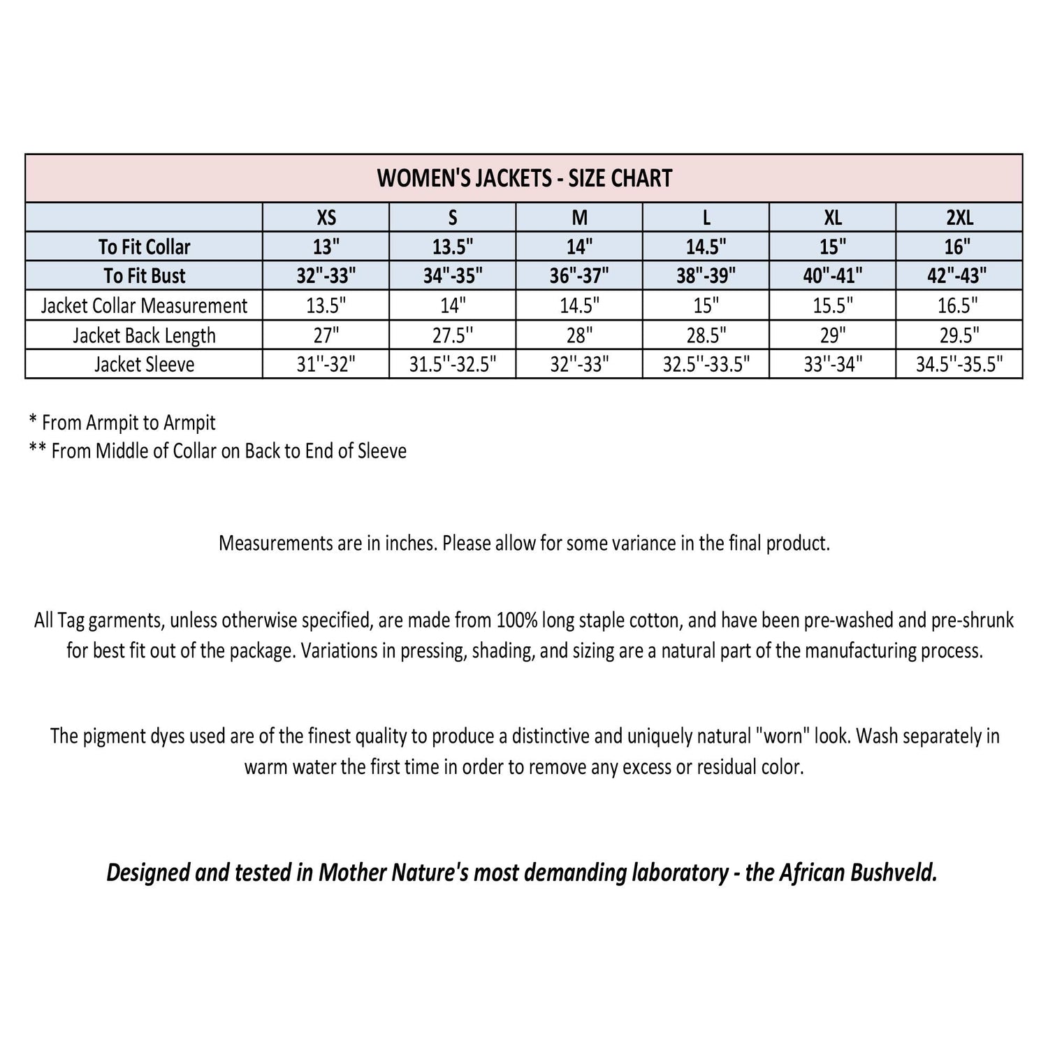 - VERSATILE AND QUALITY: Made in Africa from 100% cotton, our Women's field or outdoor hunting outerwear has strong stitching to ensure maximum durability and performance. This multipurpose Men's jacket is perfect for hiking, fishing, hunting, travel or any outdoor adventure. EASY TO CARE FOR: TAG Safari Women Field Jacket, pigment dyed, pre-washed and pre-shrunk. It's fashionable and can be a perfect gift for friends, families or relatives. It's Machine Washable and easy to maintain.