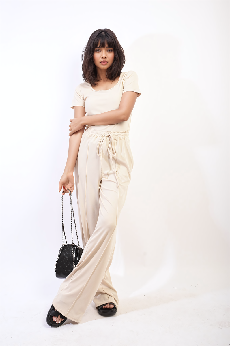 Short Sleeve BodySuit and High Waist Drawstring Trouser Co-ord Set