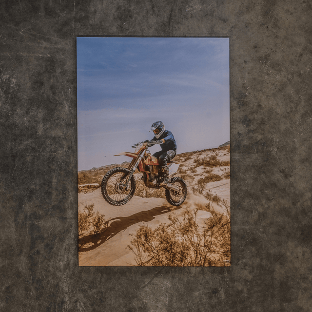 Elevate your space with "To New Heights," a dynamic canvas showcasing the exhilarating energy of motocross. This stunning image captures a rider launching their bike high above the sandy dunes of the Sahara Desert, perfectly embodying the spirit of adventure. Taken during our MX jersey collection shoot in Morocco, this striking photograph reflects our commitment to showcasing products in the most inspiring environments. It's the perfect piece for any man cave, bringing a sense of thrill and dedication to your walls.