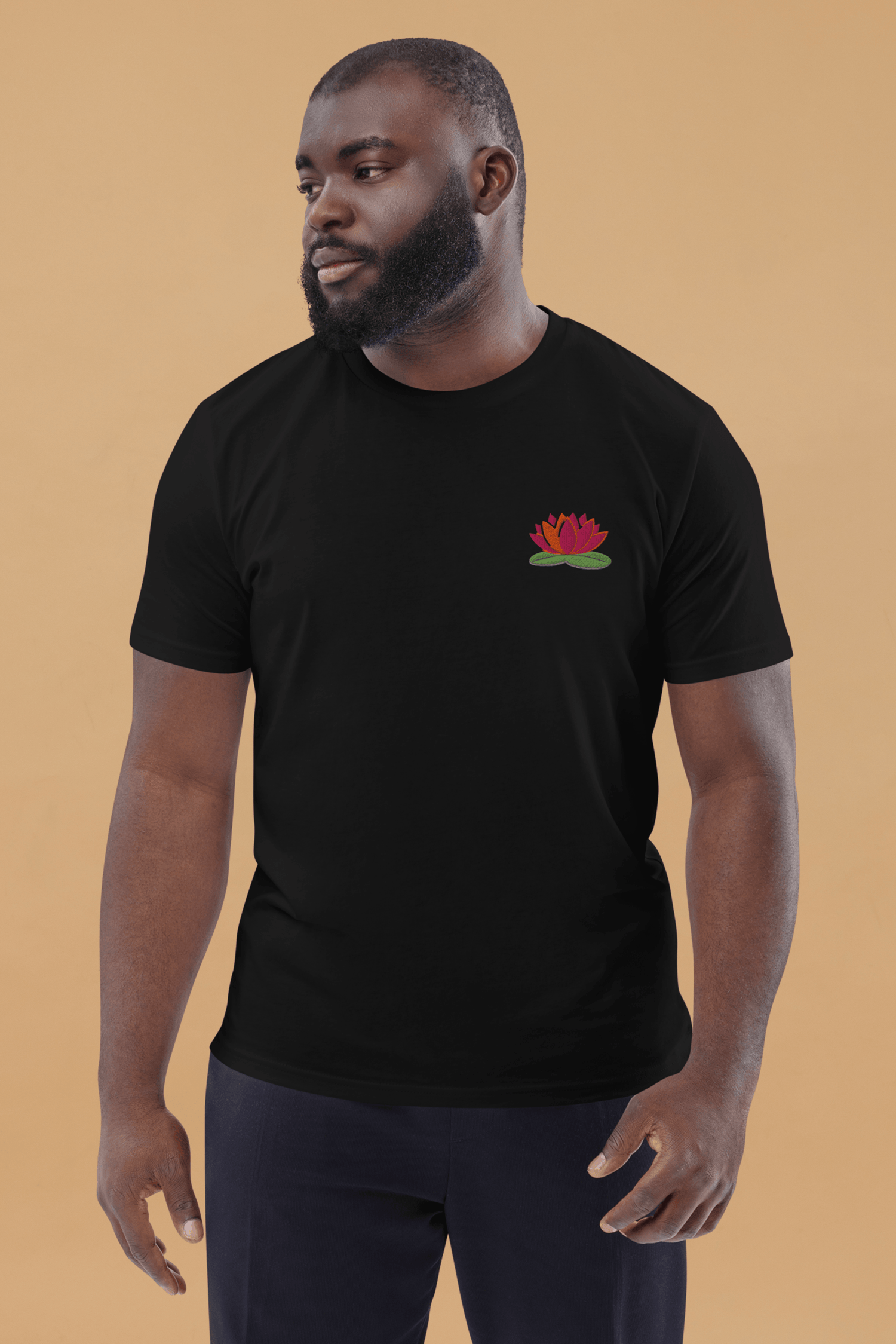Embroidered on the left chest, the delicate water lily serves as a reminder that protecting these ecosystems means protecting our future. Designed in collaboration with Rainforest Foundation UK, this black t-shirt is part of a special collection that donates 10% of sales value to support rainforest conservation and Indigenous communities—the true guardians of the forest.