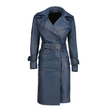 Womens Double Breasted Leather Trench Coat | Blue