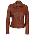 Embrace a rugged yet chic style with this Women's Brown Leather Harrington Trucker Jacket. Crafted from genuine leather, this casual jacket exudes a timeless appeal that effortlessly transitions from day to night. The classic trucker silhouette features a spread collar, button-front closure, and multiple pockets, offering both functionality and fashion-forward flair. The rich brown hue adds warmth and depth, while the supple leather construction ensures lasting durability. Whether you're running errands or meeting friends for drinks, this versatile jacket will elevate your look with an edgy yet sophisticated touch. Pair it with your favorite jeans and boots for a cool, casual ensemble.