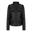 Women's Leather Motorcycle Jacket Multiple Zip Pockets Stand Collar | Black