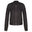 Women's Suede Bomber Leather Jacket, Zip Front, Ribbed Cuffs and Hem | Black
